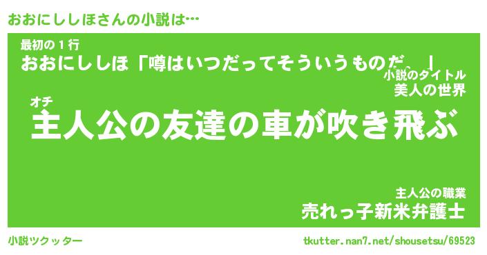 | 男性向けラノベタイトル風あだ名 | 『オオニシシホアートオンライン』 |