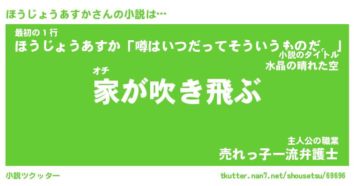 | 男性向けラノベタイトル風あだ名 | 『ほうじょうあすかの憂鬱』 |