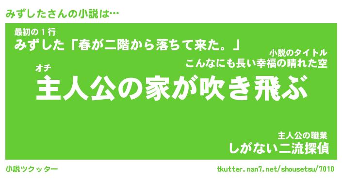 | 男性向けラノベタイトル風あだ名 | 『みずしたの憂鬱』 |