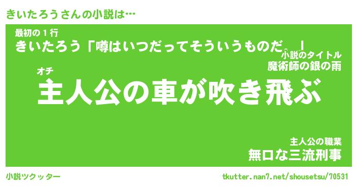 | 魚たちの銀の雨WW …「ケモノ」 | 10月27日 05:47 |