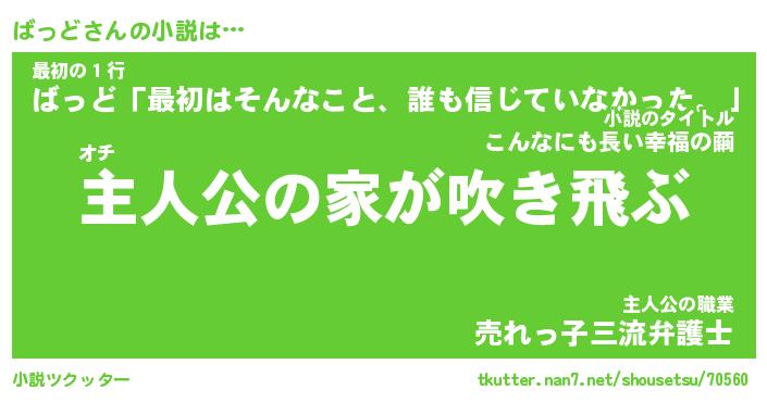 | 男性向けラノベタイトル風あだ名 | 『ばっどの憂鬱』 |