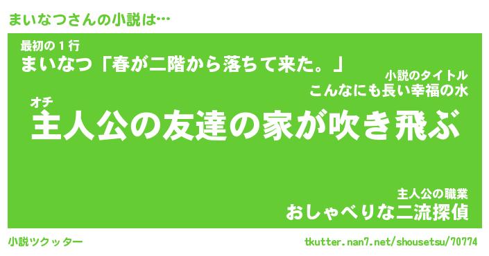 | 男性向けラノベタイトル風あだ名 | 『まいなつの憂鬱』 |