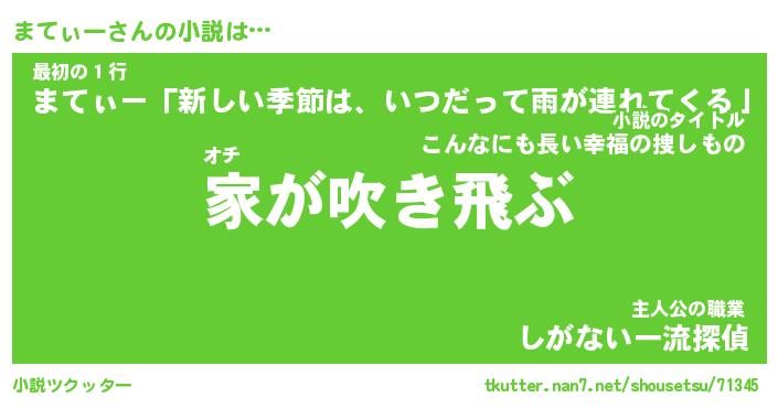 | 男性向けラノベタイトル風あだ名 | 『まてぃーの憂鬱』 |