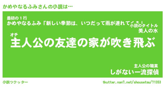 | 男性向けラノベタイトル風あだ名 | 『かめやなるふみの憂鬱』 |