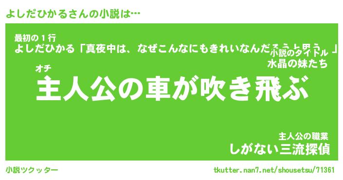 | 男性向けラノベタイトル風あだ名 | 『よしだひかるの憂鬱』 |