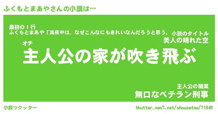 | 男性向けラノベタイトル風あだ名 | 『ふくもとまあやの憂鬱』 |