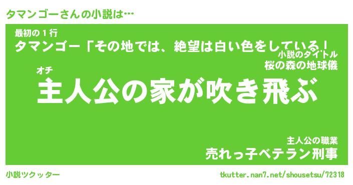 | 男性向けラノベタイトル風あだ名 | 『タマンゴーの憂鬱』 |