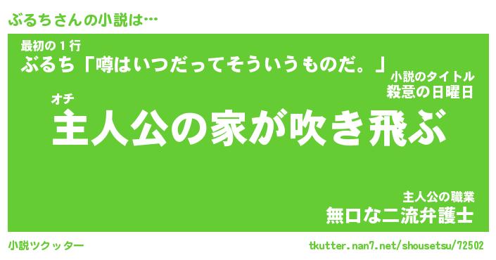 | 男性向けラノベタイトル風あだ名 | 『ぶるちの憂鬱』 |