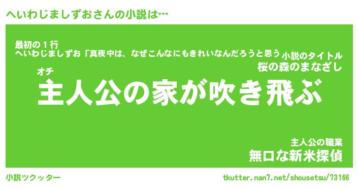| 男性向けラノベタイトル風あだ名 | 『へいわじましずおの憂鬱』 |