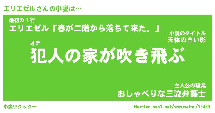 | 胡散臭い通販商品みたいなあだ名 | 『億万長者になれる霊験あらたかなお札…その名も「エリエゼル」』 |