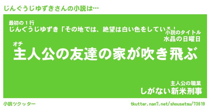 | 男性向けラノベタイトル風あだ名 | 『ジングウジユズキアートオンライン』 |