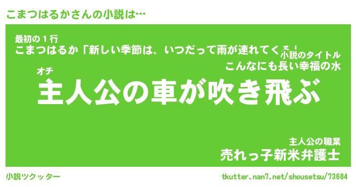 | 男性向けラノベタイトル風あだ名 | 『こまつはるかの憂鬱』 |