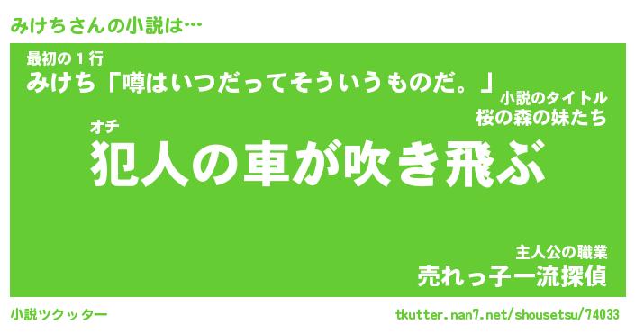 | 胡散臭い通販商品みたいなあだ名 | 『億万長者になれるブレスレット…その名も「みけち」』 |
