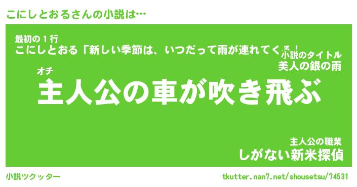 | 男性向けラノベタイトル風あだ名 | 『こにしとおるの憂鬱』 |