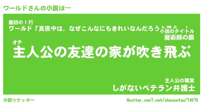 | 男性向けラノベタイトル風あだ名 | 『ワールドの憂鬱』 |