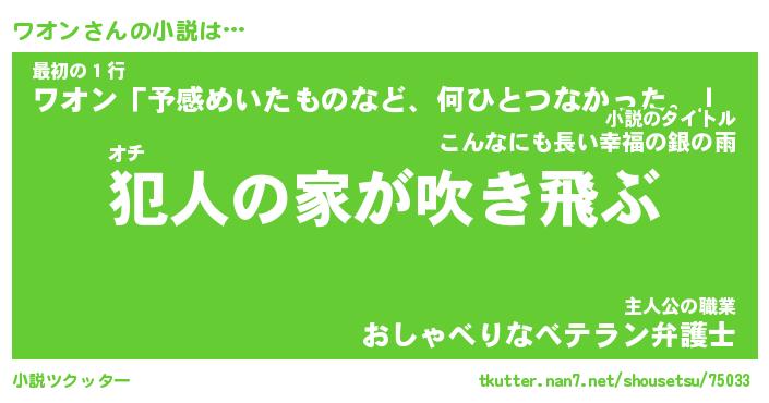 | 魚たちの銀の雨WW …「ケモノ」 | 10月27日 05:47 |