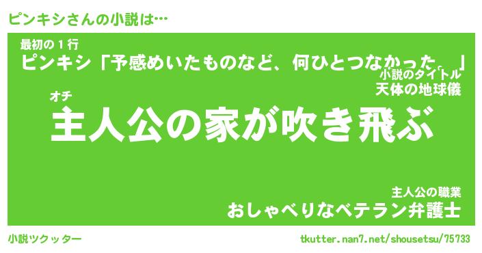 | 男性向けラノベタイトル風あだ名 | 『ピンキシの憂鬱』 |