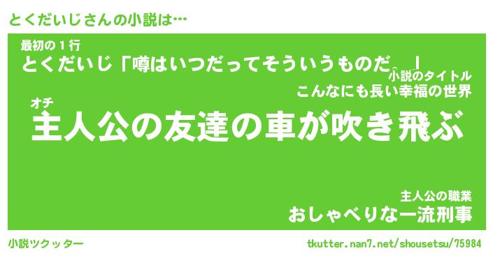 | 男性向けラノベタイトル風あだ名 | 『トクダイジアートオンライン』 |
