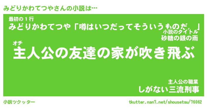 | 伝説のあだ名 | 『不死鳥の傭兵みどりかわてつや』 |