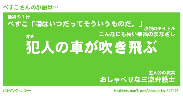 | 胡散臭い通販商品みたいなあだ名 | 『億万長者になれるブレスレット…その名も「べすこ」』 |