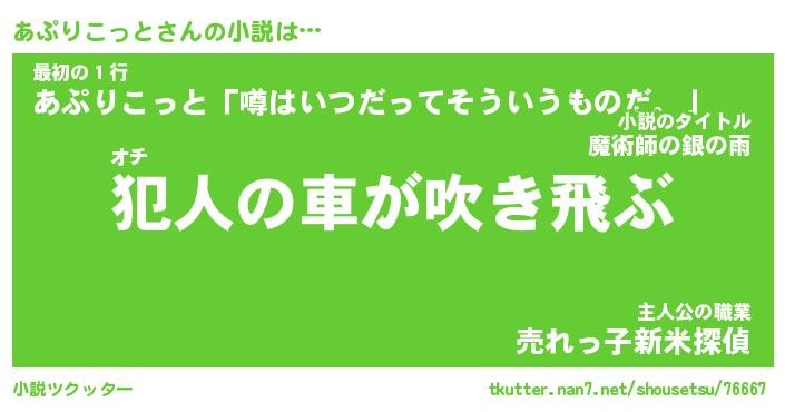 | 魚たちの銀の雨WW …「ケモノ」 | 10月27日 05:47 |