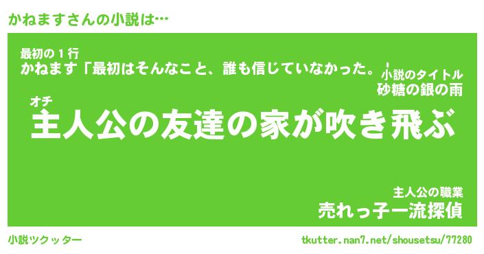 | 魚たちの銀の雨WW …「ケモノ」 | 10月27日 05:47 |