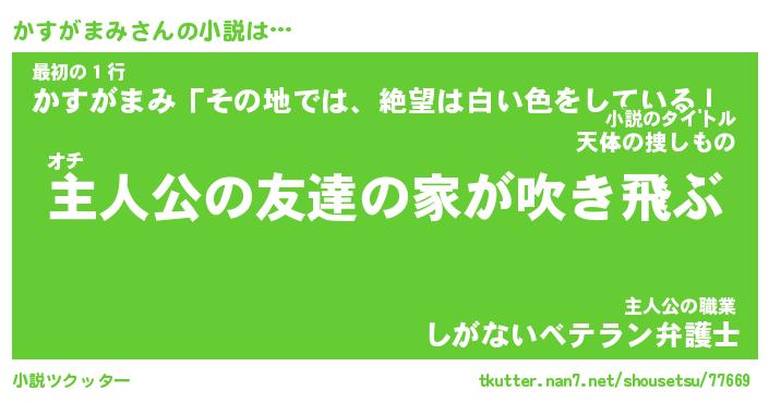 | 男性向けラノベタイトル風あだ名 | 『かすがまみの憂鬱』 |