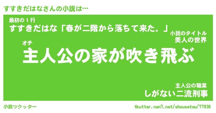| 胡散臭い通販商品みたいなあだ名 | 『必ず成功する霊験あらたかなお札…その名も「すすきだはな」』 |