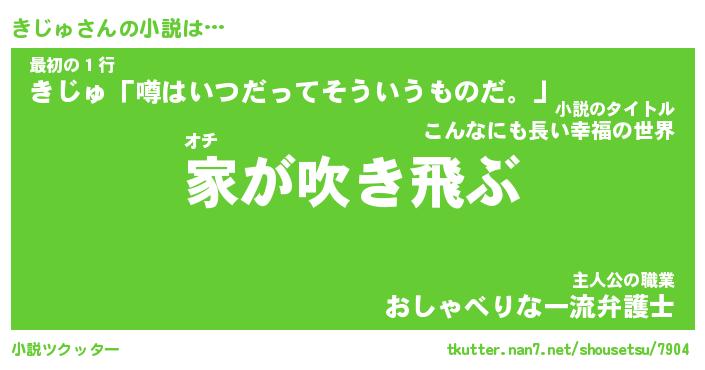 | 男性向けラノベタイトル風あだ名 | 『きじゅの憂鬱』 |