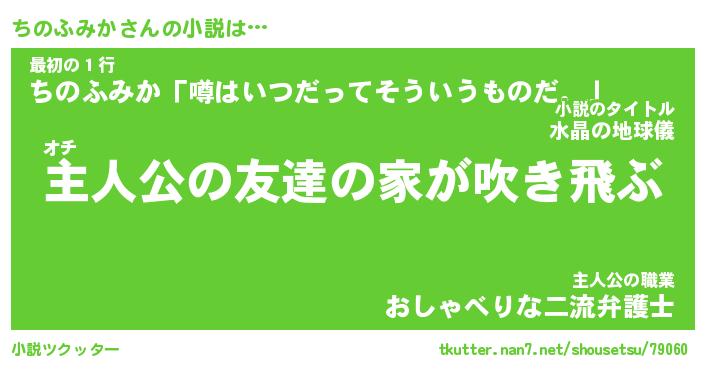 | 男性向けラノベタイトル風あだ名 | 『ちのふみかの憂鬱』 |
