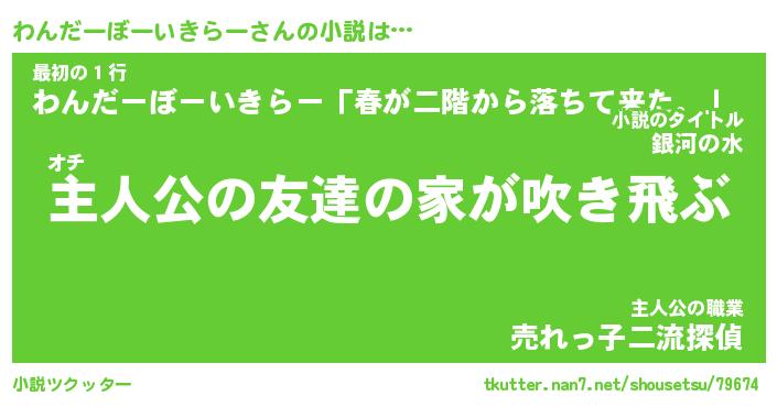 | 魚たちの銀の雨WW …「ケモノ」 | 10月27日 05:47 |