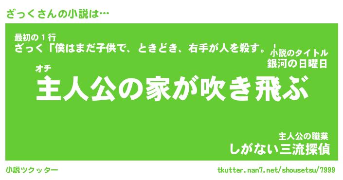 | 男性向けラノベタイトル風あだ名 | 『ざっくの憂鬱』 |