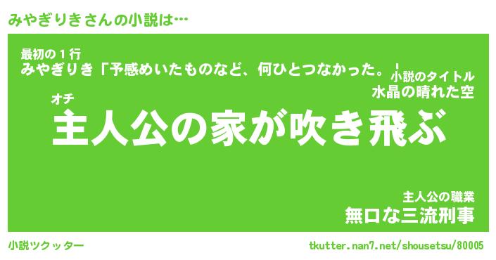 | 男性向けラノベタイトル風あだ名 | 『みやぎりきの憂鬱』 |