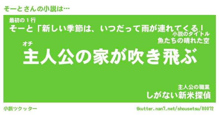| 魚たちの銀の雨WW …「ケモノ」 | 10月27日 05:47 |