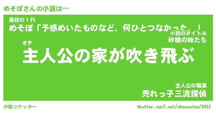 | 男性向けラノベタイトル風あだ名 | 『めそぽの憂鬱』 |