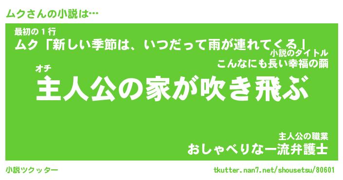 | 男性向けラノベタイトル風あだ名 | 『ムクの憂鬱』『ノーゲーム・ノームク』 |