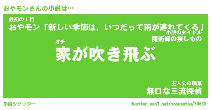 | 男性向けラノベタイトル風あだ名 | 『おやモンの憂鬱』 |