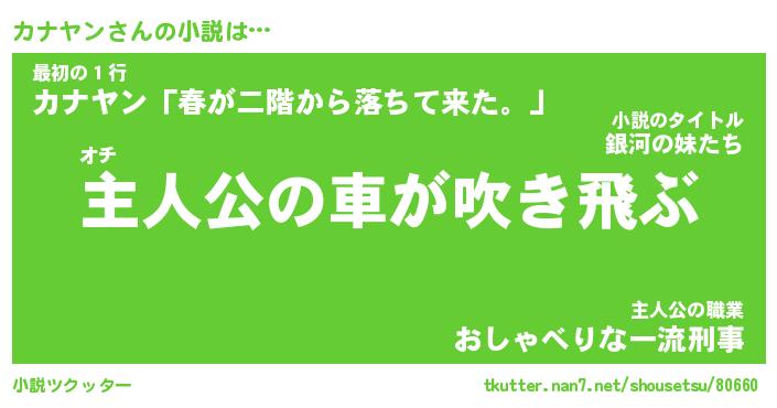| 男性向けラノベタイトル風あだ名 | 『カナヤンの憂鬱』 |