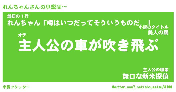 | 男性向けラノベタイトル風あだ名 | 『れんちゃんの憂鬱』 |