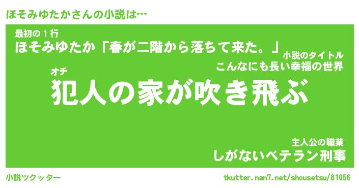 | 男性向けラノベタイトル風あだ名 | 『ホソミユタカアートオンライン』 |