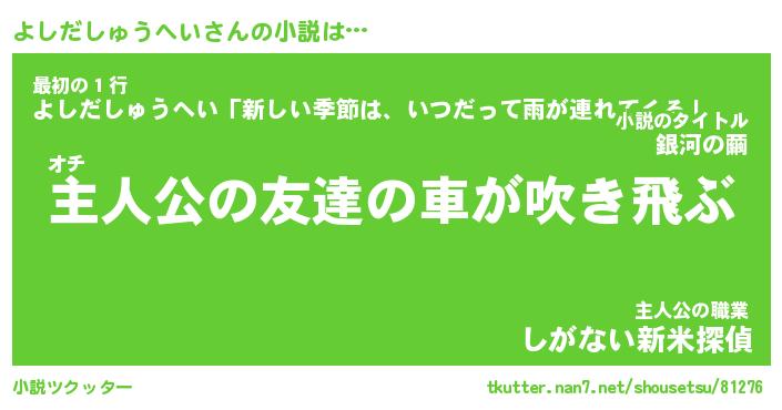 | 肩書あだ名 | 『よしだしゅうへい社長』 |