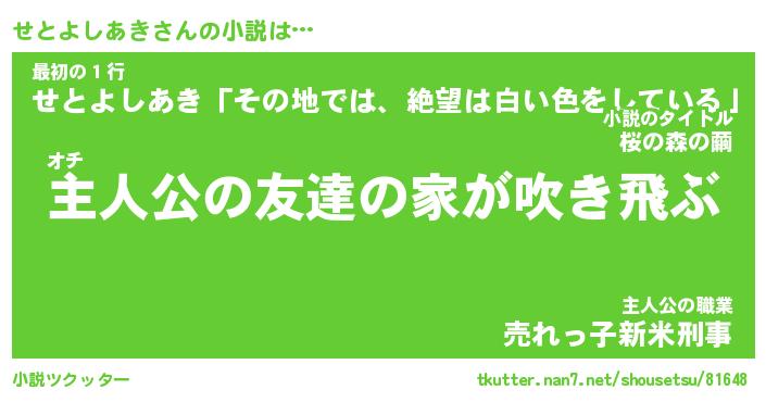 | 男性向けラノベタイトル風あだ名 | 『せとよしあきの憂鬱』 |