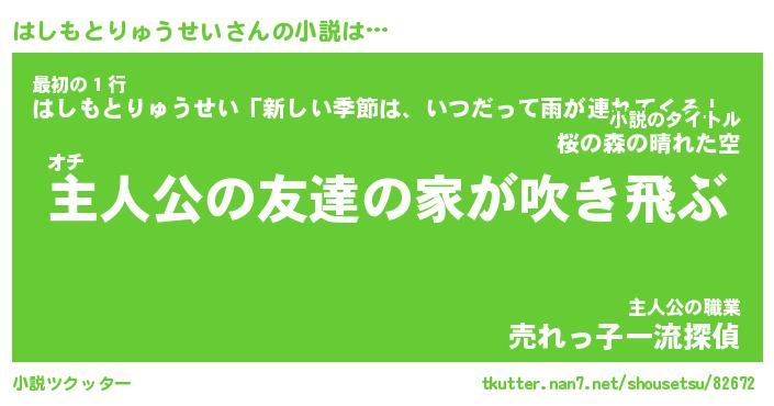 | 男性向けラノベタイトル風あだ名 | 『はしもとりゅうせいの憂鬱』 |