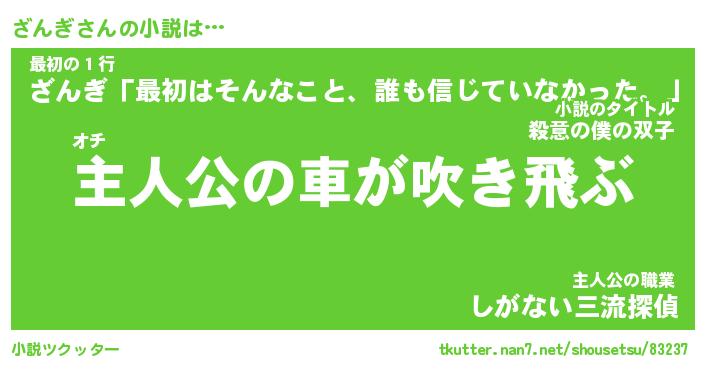 | 男性向けラノベタイトル風あだ名 | 『ざんぎの憂鬱』 |