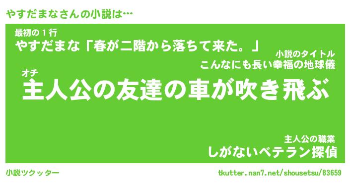 | 胡散臭い通販商品みたいなあだ名 | 『億万長者になれる水晶球…その名も「やすだまな」』 |