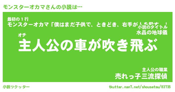 | 胡散臭い通販商品みたいなあだ名 | 『モテモテ間違いなし霊験あらたかなお札…その名も「モンスターオカマ」』 |