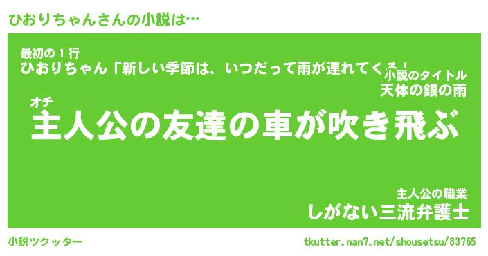 | 魚たちの銀の雨WW …「ケモノ」 | 10月27日 05:47 |
