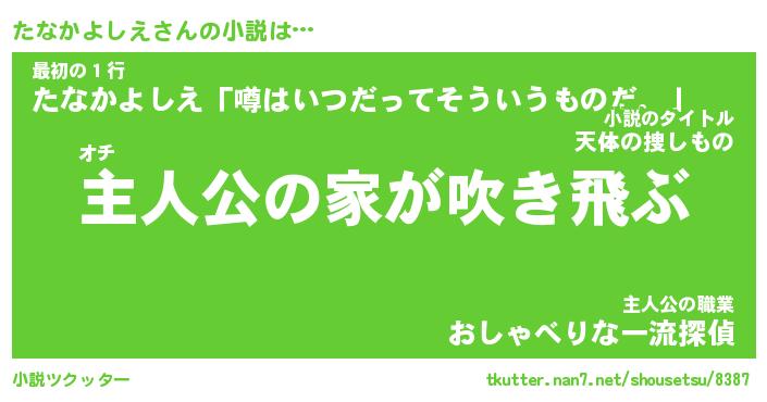 | 男性向けラノベタイトル風あだ名 | 『たなかよしえの憂鬱』 |