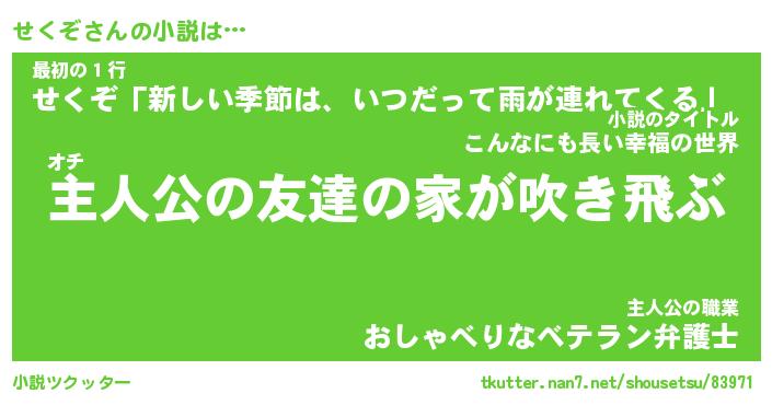| 男性向けラノベタイトル風あだ名 | 『せくぞの憂鬱』 |