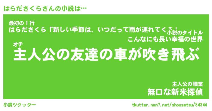| 男性向けラノベタイトル風あだ名 | 『ハラダサクラアートオンライン』 |